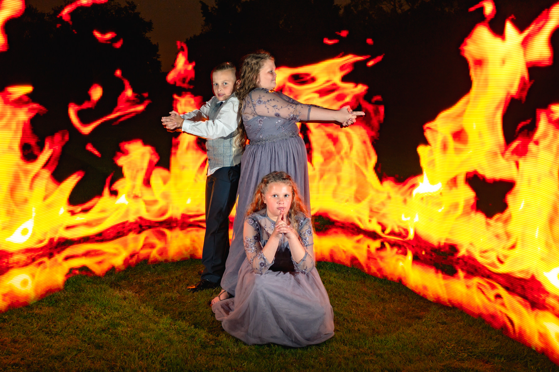 They started getting groups to go outside in the dark where they had set up an area to take some special effects photographs.